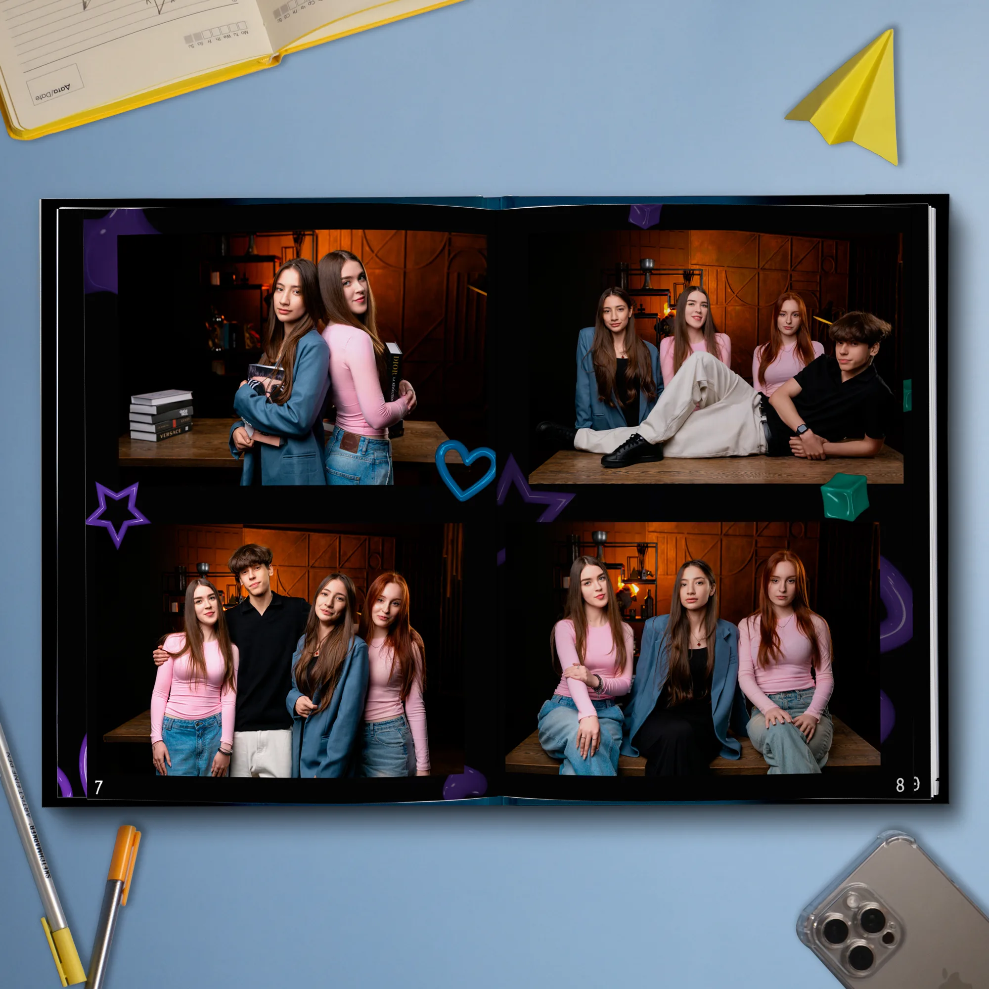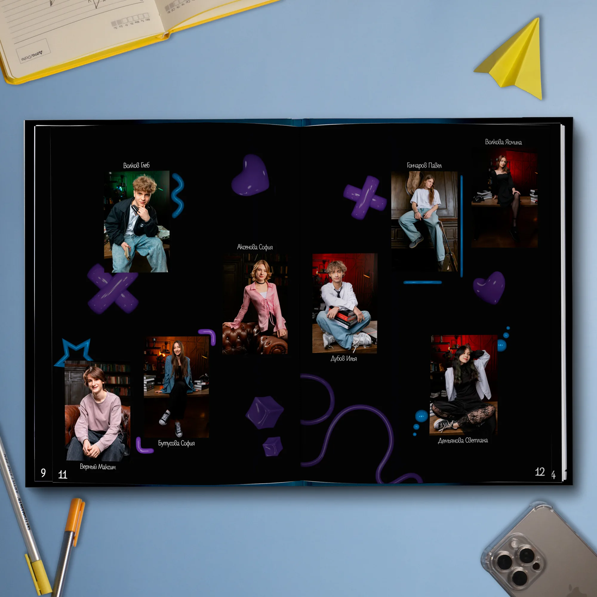 6ой разворот — виньетки всех выпускников (зависит от кол-ва детей в классе)