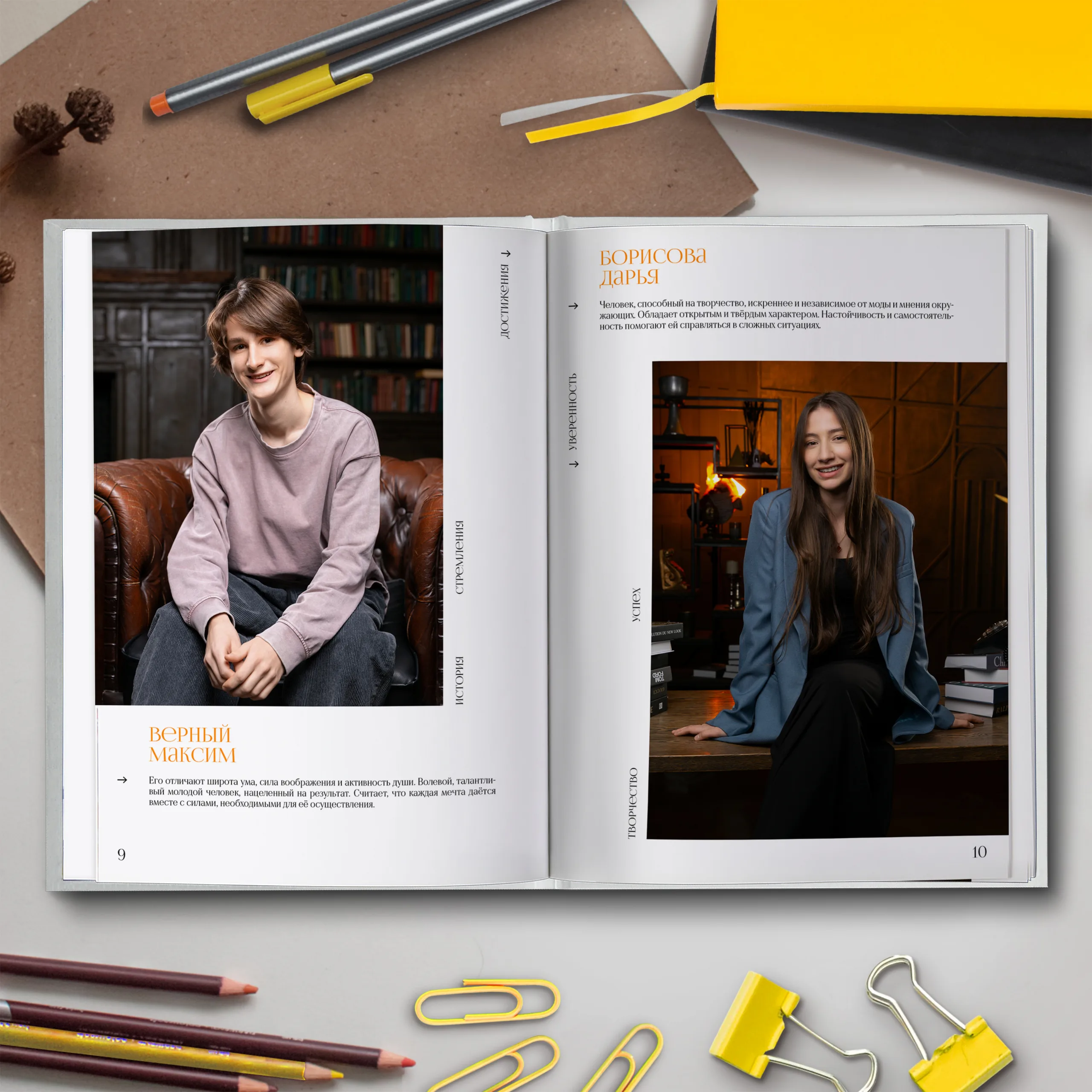4ый разворот и далее — личные страницы учеников с личной характеристикой